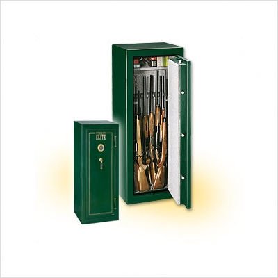 Stack - On Elite 16 Gun Fire Resistant Safe With Electronic Lock keeps your guns safe from fire and prying hands alike. Protect your investment from Mother Nature and thieving scum. This large Safe can hold 16 rifles or shotguns plus has a top shelf to hold your ammo. The advanced electronic lock and ETL fire rating give you peace of mind that only comes from securing your precious investments in a top-quality safe. Details: 5 large, live action steel locking bolts and 3 solid steel dead bolts on the hinge side of the door provide 8 locking points for greater security; Electronic lock has a time out period after 3 incorrect attempts; Lock includes operational lights for open, low battery warning and incorrect entry; Lock batteries are accessible from the front of the safe and are easy to replace. A trouble key is included; ETL fire rated for 30 minutes up to 1400 degrees F with UL classified gypsum wallboard and Palusol door stripping your investment is safe! California Department of Justice certified; Interior is fully carpeted... top shelf is positioned in the back of the unit so longer guns can be stored in the front along the side walls; Includes Stack-On's patented gun barrel rests and Standoffs... Standoffs allow scoped guns to stand upright in the safe, not at an angle, to maximize the safe's storage capacity; Solid steel pry-resistant door for greater security; Pre-drilled mounting holes in the body of the safe allow for easy attachment... fastening hardware is included; Not recommended for storing CDs or other electronic storage devices; Approx. 23 3/8 x 20 3/4 x 59", 386 lbs. Lock 'em up the right way! Order Today! Please Note: This item is shipped by commercial carrier curbside. Curbside delivery (i.e., liftgate delivery to the curb) is required for this item. Ships in 1 box: 59" x 20 3/4" x 23 3/4", 386 lbs. Stack-On Elite 16 Gun Fire Resistant Safe with Electronic Lock, Brown