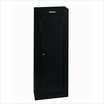 GCB-908-DS Features: -Gun security cabinet. -Black finish. -Holds 8 rifles or shotguns up to 54'' tall. -Top shelf provides additional storage. -Shelf positioned in the front allows storing longer guns along the back wall of the unit. -Full length welded and staked steel piano hinge for security. -Flush mount bottom for easier fastening to the floor. -Has foam padded sides and bottom. -California DOJ approved. -Made in USA. -Manufacturer provides limited one year warranty security plus steel cabinets and pistol boxes.