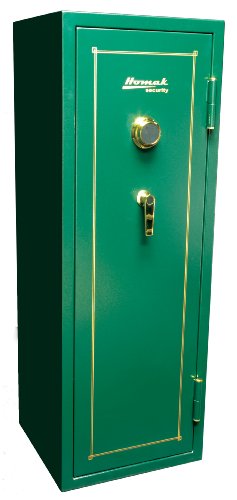 Homak 16 - gun Safe with Combination Lock. Trustworthy security for your firearms. For over half a century, Homak's been providing high security and big peace of mind for gun owners. Their 16-gun Safe with Combination Lock keeps that tradition going strong: High security combination lock; Carpet lined interior; Adjustable shelf; Built-in barrel rests adjustable to desired height; Extra plastic barrel rests for multi-length gun barrels; Extremely durable hunter green powder coat paint finish; Dept. of Justice certified; Exterior: 20 3/4 x 20 1/8 x 59" h. Interior: 20 1/2 x 18 7/8 x 58 1/2" h. 167 lbs. ; Peace of mind is a lock with Homak! Order Today! Please Note: This item will be shipped by commercial carrier curbside. Ships in 1 box: 20.75" x 20.25" x 59", 175 lbs. High-value orders require a physical street address, otherwise insurance costs will be added to the shipping total. Homak 16-gun Safe with Combination Lock