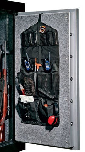 This convenient Stack-On® double organizer expands the storage possibilities in your safe, and keeps frequently used equipment close at hand. It features mesh and full-panel pockets for stashing tools and supplies, and a belt strap for hanging knives and other items. It easily attaches to the safe door.
